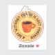 Funny coffee sticker with the text A Day Without Coffee Is Lost Forever and a steaming coffee cup in yellow and orange colours.