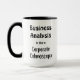 The printing quality and colors are gorgeous; I've received compliments from clients on it. They provide tons of editing options, which I didn't realize and when I did, the mug turned out exactly as I'd wanted! The color picker on Zazzle is fairly comprehensive and in-depth, and due to computer monitor differences, it's hard to know exactly what color will appear on the product. But I was thrilled with everything--the edges of the words are crisp, no bleeding, the font selection is huge, and the editing process allows for lots of variation.