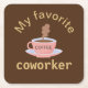 The funny saying: My favourite coworker and a cute coffee mug illustration. You can click personalize and change the text to your liking, or buy it as is.