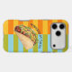 A fun, fabulous pop culture phone case in bold beautiful retro style in bright stripes of yellow, orange, green and blue, with a mouthwatering taco graphic. Whimsical text spells out "POWERED BY TACOS". This text may be edited to any text desired, or leave as shown. Protect your phone and express your love of tacos with this unique case. Available in many different sizes to fit both iPhone models as well as Samsung. The gender neutral color scheme works for anyone and any age.