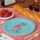 A funny painting of a scary, roaring, psychedelic art T Rex dinosaur. Colorful Tyrannosaurus Rex dinosaur with orange, yellow, pink, purple, blue and aqua green brush strokes created using acrylic digital art media which gives a vibrant yet organic feel. This dinosaur party plate design is fully customizable and the ideal gift for dinosaur lovers and artsy design fans. Dinosaur illustration created by artist Catherine Sweetman