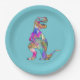 Funny Colorful T Rex Psychedelic Dinosaur Art Paper Plate