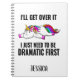 Funny colourful unicorn spiral notebook with text, "I'll get over it. I just need to be dramatic first." Personalize with a name or any text you choose. Perfect notebook for the drama queen