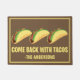 Funny Trendy Come Back With Tacos Doormat. Custom designed mat with the words "Come Back With Tacos" written in a cool typography font. This funny taco lover door mat will surely delight every guest who encounters it. Personalize this taco door mat with your family name.