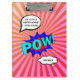 Customize it with your name and a motivating message to inspire you every day. Whether you're taking notes, sketching ideas, or simply organizing your thoughts, this clipboard will add a touch of comic book fun to your routine.