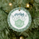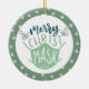 Funny COVID MERRY ChristMASK Photo Green Ceramic Ornament