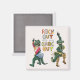 Spice up your fridge or any other magnetic surface with this fun and funny kitchen magnet. It features two funny dancing crocodiles and the hilarious pun “Rock out with your croc out”. It’s a great way to add some humour and personality to your kitchen. You’ll love seeing this magnet every time you open your fridge!
