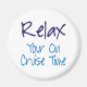 Fun and funny cruise ship stateroom cabin door. Relax Your On Cruise Time. Enjoy your vacation travels away from home and work. Have some fun. This cabin door marker helps you find your stateroom while cruising on a ship. Modern design and easy to read. Fun cruise magnet packs up small and light. Use for all your cruise ship travel vacations. Bon voyage! Help find and identify your cabin stateroom with this simple design.