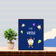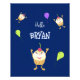 Poster with cute happy cupcakes on dark blue background and party balloons
