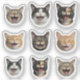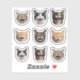 A playful collection of hilarious cat face stickers, each featuring a different expressive feline caught mid-meow or laugh. This charming design set includes nine unique cat faces in a symmetrical 3x3 grid layout, perfect for cat lovers who appreciate humour and cuteness. Personalize with your own pet’s photo or human face to turn this design into a custom set of personalized expressions! Ideal for laptops, water bottles, planners, or gifting fellow cat enthusiasts. The realistic, high-resolution artwork adds a fun pop of personality to any surface.