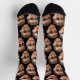 Funny custom face crew socks personalized with a photo. Upload a cutout of the face with a transparent background and it will automatically be replicated all over the socks, on both sides. To make the cut-out, you can download any mobile or computer app, or use the program named Canva or Photoshop.