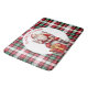 This whimsical funny bathmat features a delightful watercolor-style illustration of Santa taking a humourous break on the toilet, surrounded by a huge present and by the timeless charm of red and green plaid tartan borders.