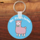 This funny keychain features a cute llama and a silly play on the expression No Problema. The happy pink llama is on a bright turquoise blue background under the text "No Prob-Llama" in white print. This design is fully customizable! You can change the background colour, font, font colour, or text if you wish. Just hit the Personalize button to delete or enter your own text, or hit the Customize button to make any colour or font changes. This design is also available on buttons, stickers and T shirts. Perfect for a gift or accessory for lovers of adorable llamas, animals, Spanish language, buttons, and funny wordplay designs.