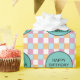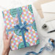 Cool, blue, orange white, and pink chequerboard pattern and a text template. To edit, click personalize and change the words.