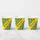 This funny customizable WAH GWAAN? Jamaica flag paper cup shows the flag of JAMAICA in a tiled pattern. The yellow diagonal strap has WAH GWAAN? and WELCOME TO OUR HOME in black typography. Both these texts are CUSTOMIZABLE, so you can personalize with your own message(s) or name(s). This would make a great addition to your kitchen or barware, or even your man cave or she den. Also suitable to use in embassies, cultural centres, clubs, churches, restaurants, wine bars, etc. This patriotic paper cup would also make a great addition to your party supplies for parties to celebrate Birthdays, Christmas, National Heritage & Independence Days, etc. Yes, I can hear the thumping bass now... Matching items and JAMAICA home decor ideas can be found in the JAMAICA Collection by Berean Designs.