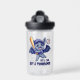 Batty about bats? This water bottle, which features a cute young baseball bat toting and baseball cap wearing young vampire bat taking a swing at a baseball, accompanied by the words "Yes, You Can Bat a Thousand!" encourages the recipient to achieve and reach higher. Baseball metaphors aside, this is a great way to motivate and/or/reward budding young athletes ... and can also double as a punny Hallowe'en water bottle! Reverse shows identical design.