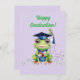 The card has a bright, whimsical design with bubbly fonts, vibrant greens. Perfect for grads who love humour, frogs, or just need a reminder to keep hopping forward!