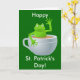 Funny Cute Frog in a Tea Cup St Patrick's Day Card