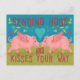 Funny Cute Hogs and Kisses Pig Pun Sending Love Holiday Postcard