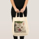 This funny and cute tote bag has a close-up photo of the face of a chocolate and silver tabby British Longhair kitten with large copper-coloured eyes with his pink tongue licking his chops. The CUSTOMIZABLE caption across the top is a cheesy pick-up line that says,"Is your last name Campbell? Because you're mmm mmm good!" You can delete the words or change them to say something else.