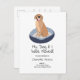 My dog and I have moved! send your moving announcement with this editable, funny and cute labrador retriever dog sitting on its bed. . Contact me if you would like an illustration of your pet in that style.