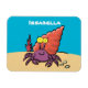 This happy hermit crab cartoon is a bright and colourful purple and orange with a blue background. Take me to the sea!