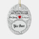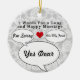 The anniversary ornament we ordered for my inlaws is beautiful. The color is perfect, and it arrived with a sweet little velvet pouch to store it in. My only complaint is that it was too late in arriving for it to be a Christmas gift, but in hindsight I should have ordered it earlier! The quality is top notch. The printing of the photo on the ceramic is great, clear and vibrant.