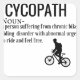 cycopath noun a person suffering from chronic bike riding disorder with abnormal urges to ride and feel free