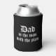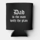 The front of the cooler has "Dad is the man with the plan" in white elegant letters with the bold black background. You can change the colours if you'd like.