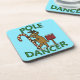 One of Santa Claus's reindeer - Dancer - is grinning and dancing around a candy cane at the North Pole. This is the perfect humourous coaster set if you're looking for a funny, cheesy cartoon pun for your Christmas party / the holiday season.