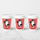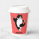 Add fun to your daily coffee or tea with this adorable paper mug featuring a chubby black-and-white cat dancing joyfully.