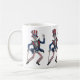 Start your day with a touch of whimsy and patriotism with our dancing skeleton coffee mug. Featuring a lively skeleton dressed in full American attire, complete with a star-spangled top hat and a stylish cane, this mug brings a fun twist to your morning coffee or tea. Perfect for those who love unique and eye-catching designs. Celebrate your love for the red, white, and blue with every sip.