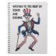 Add a touch of patriotic flair to your writing with our notebook featuring a dancing skeleton dressed in an American top hat and attire, leaning stylishly on a cane. The design captures the spirit of freedom and creativity, making it perfect for jotting down your thoughts, notes, and ideas. Whether you're a student, professional, or just someone who loves a good notebook, this "Writing to the Beat of Stars and Stripes" design will inspire you to fill every page with your most brilliant ideas. Embrace the rhythm of the stars and stripes and let your imagination dance.