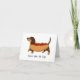 This greeting card features a watercolor portrait of a wiener dog wearing a hot dog costume with the caption "you're one hot dog!".