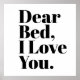 Show a little love to your comfy bed and add personality to your dorm or bedroom with this expressive poster as wall art. Bold black text is displayed on a white background.