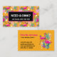 Customizable Business Cards for pickleball coaches. Funny dinking flamingos with sunglasses and palm trees on dark yellow background. Dinking coach