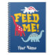Bring some humour to your stationery with this funny dinosaur notebook featuring a royal blue background and three dinosaur silhouettes. The bold 'Feed Me' text in yellow, accented with faux stitching effects, adds a playful touch. Personalize it for a unique gift!