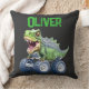 Funny dinosaur monster truck throw pillow