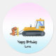 Funny dinosaur tractor boy Back To School Birthday Classic Round Sticker