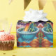 Whimsical and vibrant dinosaurs that seems to be a blend of fantasy and prehistoric charm. The dinosaurs featuring a wide-eyed expression with captivating, oversized eyes that give it a cute and curious look. Its skin is adorned with intricate patterns resembling colourful, swirling shapes and dots, almost as if its body is painted with a kaleidoscope of textures in blues, greens, yellows, and purples. The vibrant background, with its swirling skies and abstract planets, gives the impression of an otherworldly landscape, suggesting the dinosaur resides in a surreal, fantastical world. The bright, exaggerated colours and playful features give the creature a friendly, animated character, ideal for a magical or dreamlike setting.