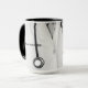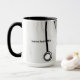 Creative doctor gift mug featuring physician lab coach, stethoscope and funny Swiss Army knife. To personalize edit text to add name of your favourite doctor or medical school graduate.