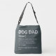 This design is a humorous, dictionary-style definition of a 'DOG DAD' (noun): a person who works hard so his dog can have the best life. Pooper-scooper pro. Ultimate love-giver and smuggler. (See also: pupper parent, crazy dog man). 'It celebrates the bond between a man and his dog and is presented as an ideal gift for pet parents for occasions like birthdays, Father's Day, or as an expression of appreciation.