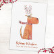 An adorable and mildly confused dog in a hat with antlers and baubles to make you smile. Is he a dog? Is he a reindeer? Change the festive greeting and names to personalize. Original art by Nic Squirrell.