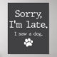 Funny Dog Lover Gift Sorry Im Late I Saw A Dog 0 Poster