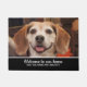 Personalize this funny dog (or other pet) photo doormat with a custom photo of your own dog, cat, or other pet, and the words "Welcome to our home (Did you bring the snacks?)" This is a great gift for the grumpy cat or dog owner and is sure to get a laugh from your guests. Perfect for you home or outside your dorm room! Easy to customize with your own pet photo.