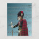 Funny digital collage of a funny dog animal dressed as a Scottish pipe major wearing a traditional red Scottish tartan vintage kilt photographed at a highland games in Scotland on a blue background with music score musical notes. Visit the VINTAGE PRINTS STORE for matching fun eccentric cartoon character animals.