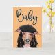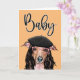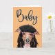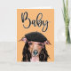 A fun and eye-catching design of an Italian Greyhound dog wearing a long brown hair wig; trendy pink spectacles and a French black beret. The words, baby, appear above her in a decorative calligraphy style font and the inside reads, let's get this party started. Customize the message and the colour of the background to suit your requirements.