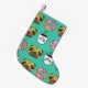 Funny dogs, doughnuts, coffee pattern. small christmas stocking