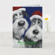This hand-drawn Christmas card features two scruffy pups in Santa hats, gazing skyward under a flurry of shimmering silver or gold foil snow. Add your family name to the front for a personalised touch that’s equal parts sweet and silly.