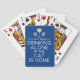 These fun playing cards feature the words "It's not really drinking alone if the cat is home" in a light cream typeface. Above the words are two paw prints in grey on either side of a wine glass in a creamy yellow. The background colour shown is a rich blue but the colour can be changed to whatever you wish - simply select 'Edit Design' to enter the design tool, where you can select the colour of your choice!